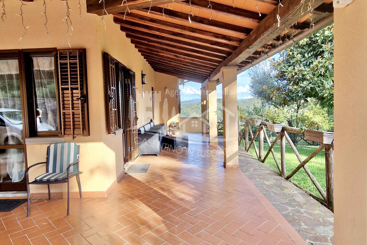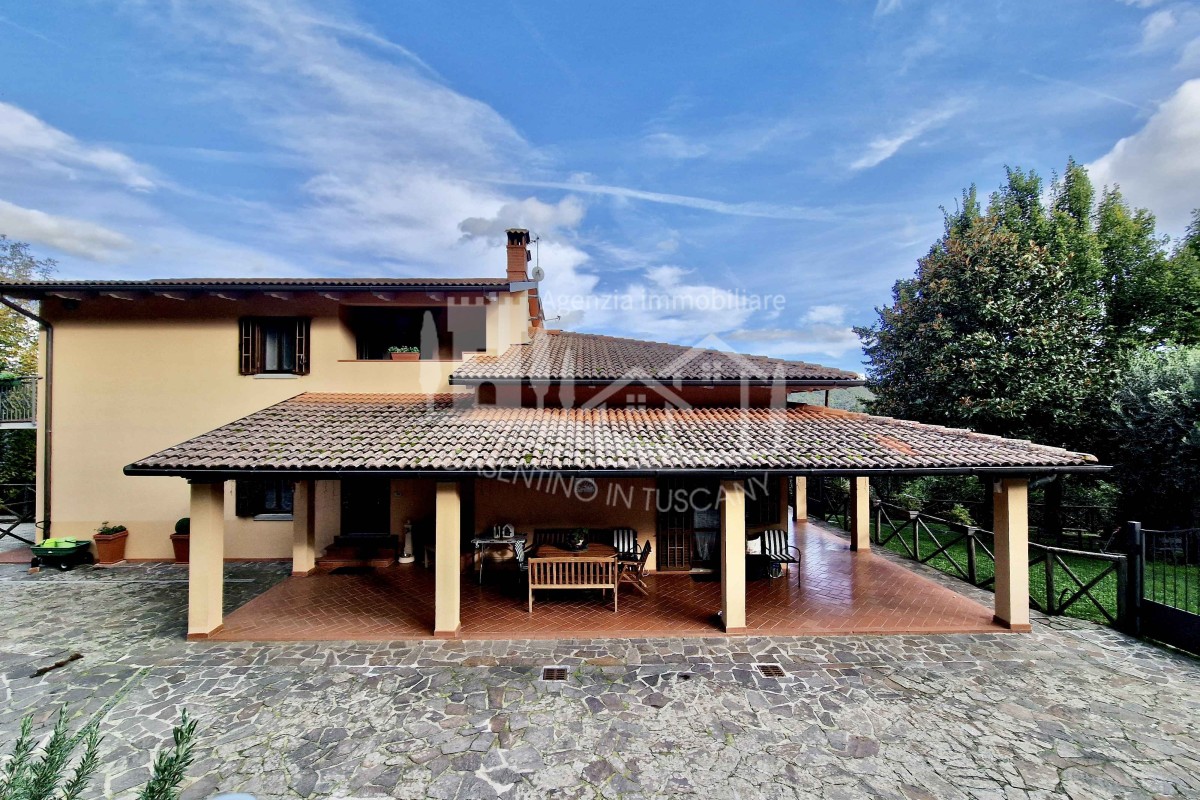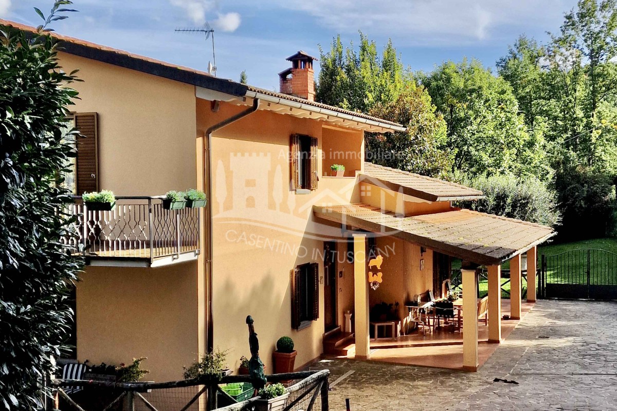 In frazione di Castel San Niccolò, in pieno contesto rurale e posizione panoramica, proponiamo una Villa bifamiliare con tutti i comfort.La proprietà ha doppio accesso carrabile per garantire privacy a entrambe le unità abitative, piazzale pianeggiante ampio e lastricato, da cui si accede al loggiato che circonda l'immobile su due lati garantendo una ampia parte coperta e protetta dalla pioggia e dal sole. Al piano terra l'appartamento è costituito da salone con caminetto, soggiorno e cucina con balcone, zona notte con tre camere da letto e due bagni, a completamento dell'appartamento al piano seminterrato troviamo ampio loggiato coperto con tende verticali motorizzate, garage doppio, taverna con cucina e forno a legna, cantina e bagno di servizio.Al piano primo l'apparta...